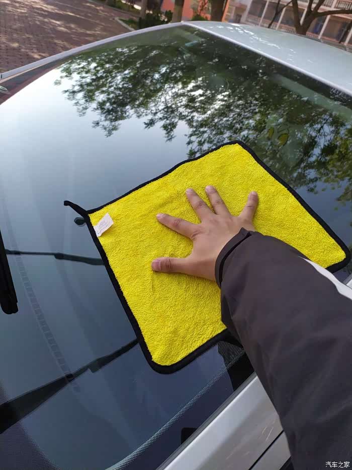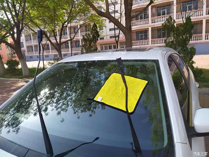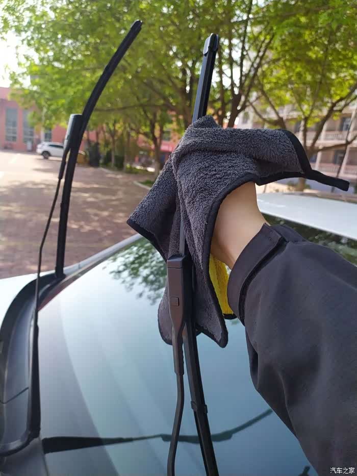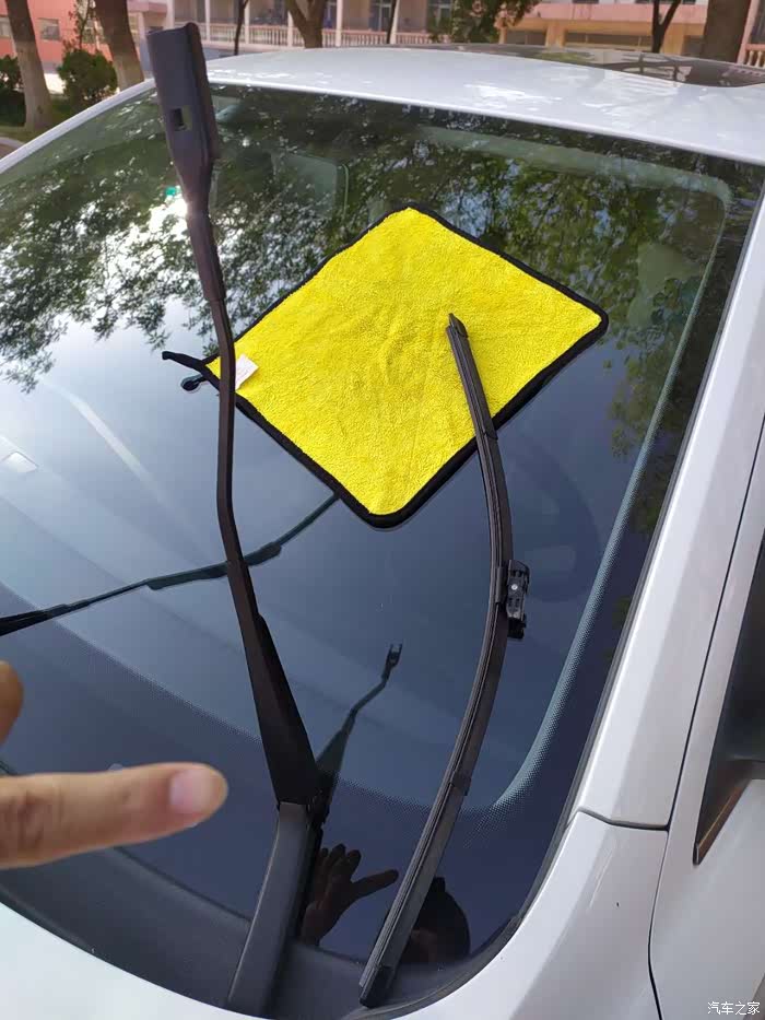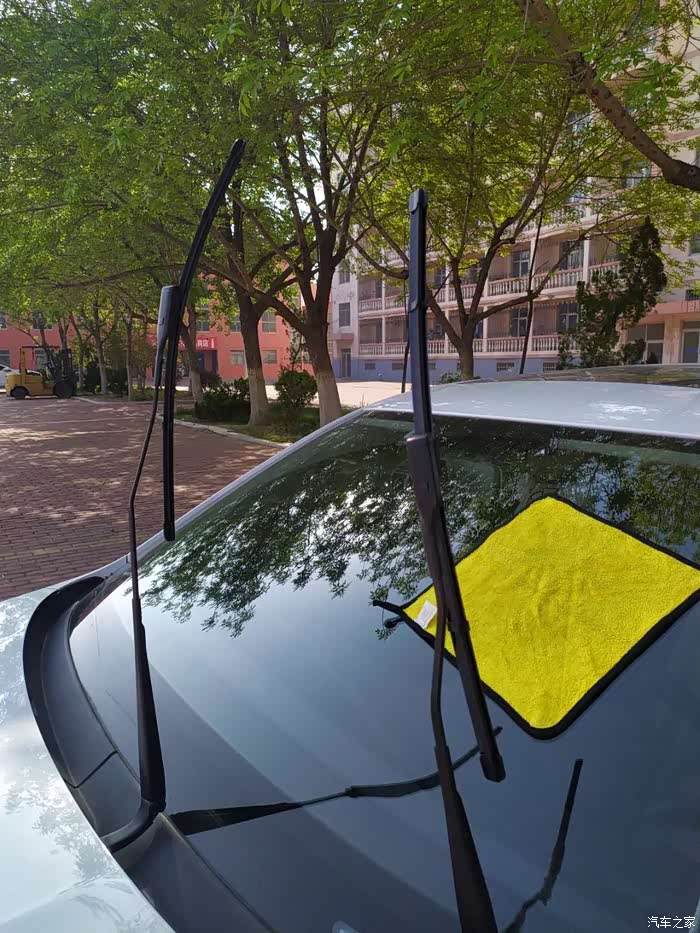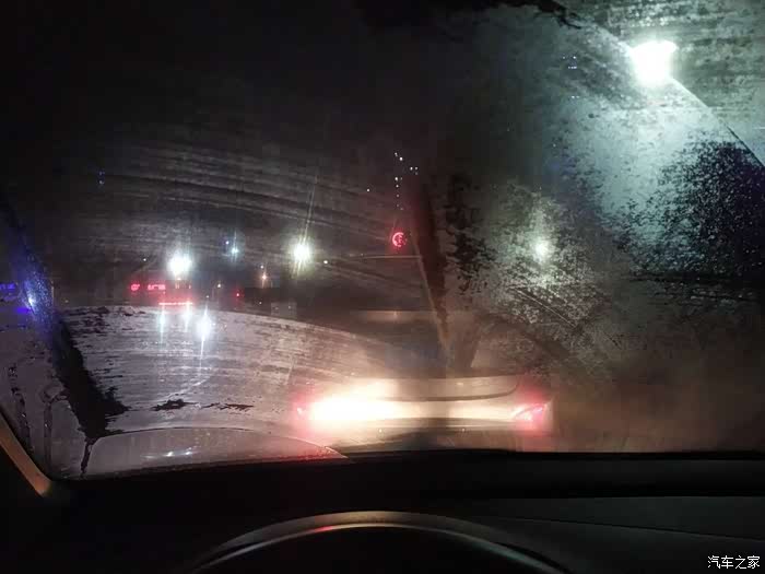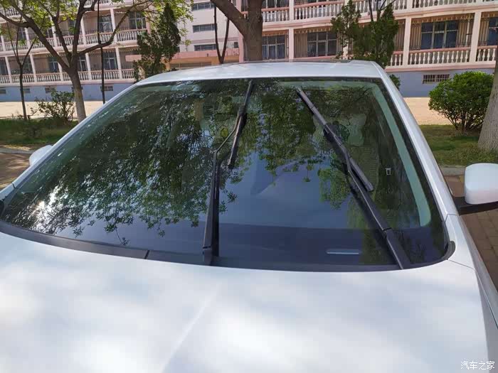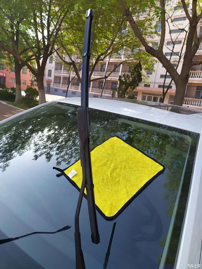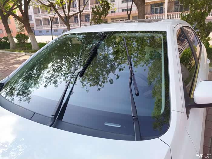 换完就路遇洒水车,这是刮完之后的效果,新的雨刷器刮得就是干净。