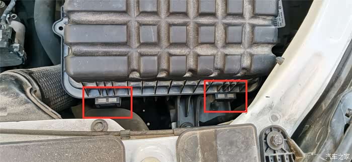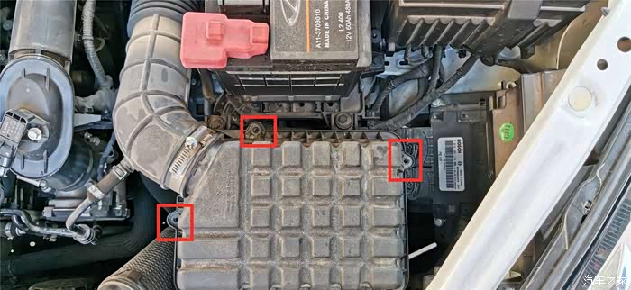 上图三个红框里就是已经拧到螺丝的三个空气滤清器的外壳固定孔。