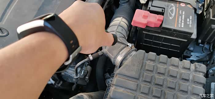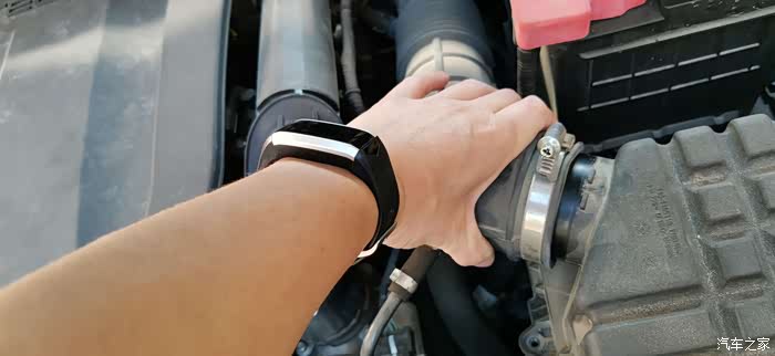 把前面拆下的气管套进去,并拧紧前面拧松的卡箍上的螺丝。