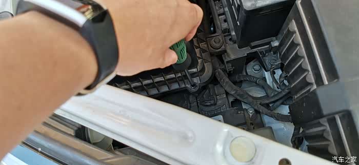 轻轻第往外拔连接在空气滤清器外壳上的气管接头,将该接头从空气滤清器外壳上拆下。