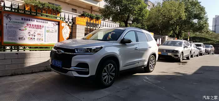 这是我今天要工作的场所,小学边上的停车地。早晨的瑞虎8沐浴着阳光,浑身发着靓丽的反光,在静静地等待我对它的维护。