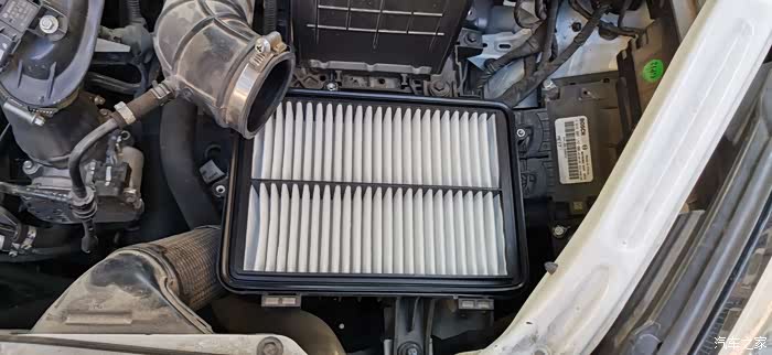 新的空气滤清器装上去了,很白很干净。