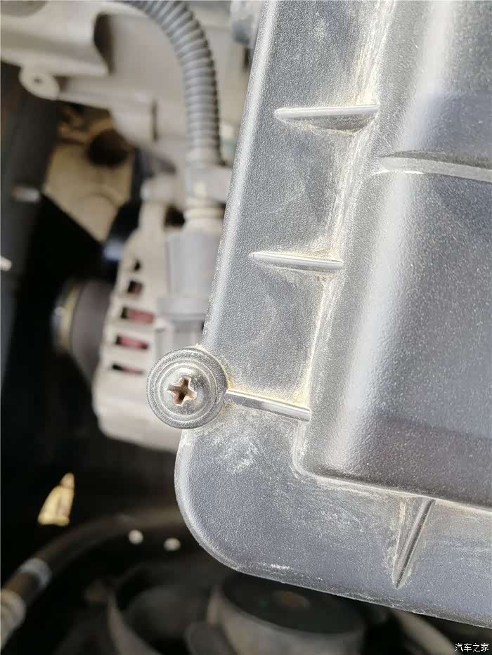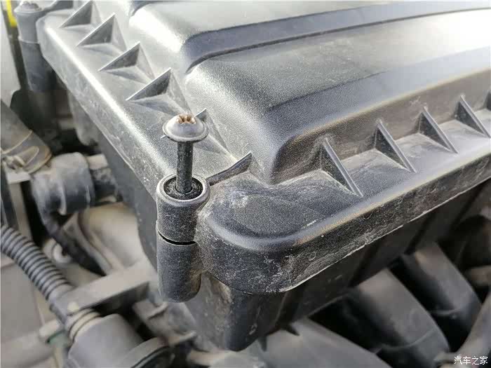 可以看到空气滤芯盖子上的螺丝有九个螺丝,都是比较常见的十字型螺丝,。