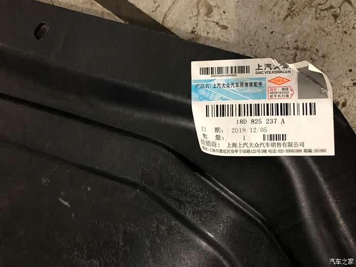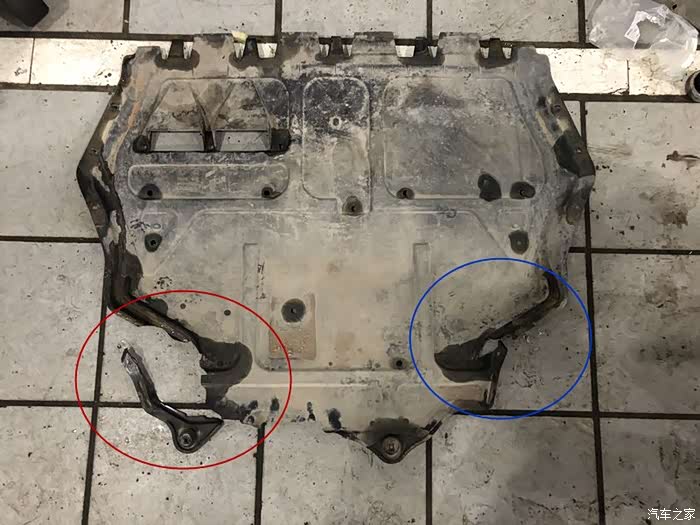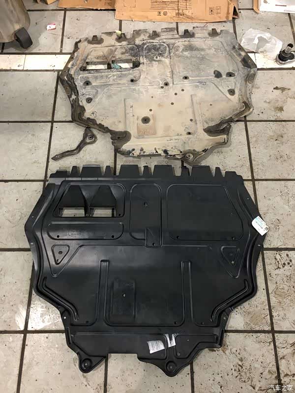 这个底板材质为塑料材质,车辆底盘遭遇磕伤一般情况下损坏的机率都比较高,原厂的底板已经裂开,已无法使用,所以必须换新的了。(价格暂时不说留个小悬念,大家猜猜需要多少钱)