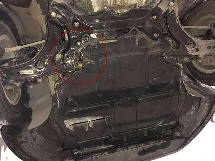 上图标记的红圈内,就是黒朗发动机下护板已经裂开。(很有可能是我之前底盘剐蹭导致的损坏)