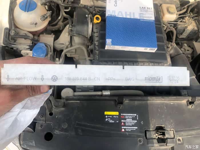 新年马上到来,上个月去保养只换了机油机滤,没有换空气滤芯和空调滤芯。以前在京东搞活动时自己存了一些,记得当时打折买的3个马勒牌子的,还有2个原厂的,这次还是没有在4S店里换,师傅只给吹了一下。昨晚跑了一趟远路,回来看车子已经17856KM。距离上次换空气滤芯已经间隔了7856KM了,也该换了,很多车友说保养手册上不是10000KM换么,其实这个没有具体的时间和距离,看自己的车子来,跑的路不一样换的频率也不一样的,勤换这点还是不错的,上次换的是原厂的,京东上汽大众自营店买的,这次换个马勒的试试效果。