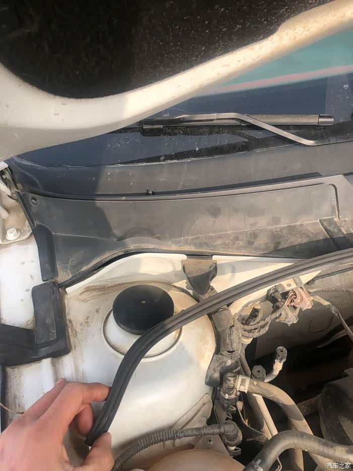 这是推到位置的样子,这样再把螺丝固定好,将密封条插到发动机舱的钢板上就可以了