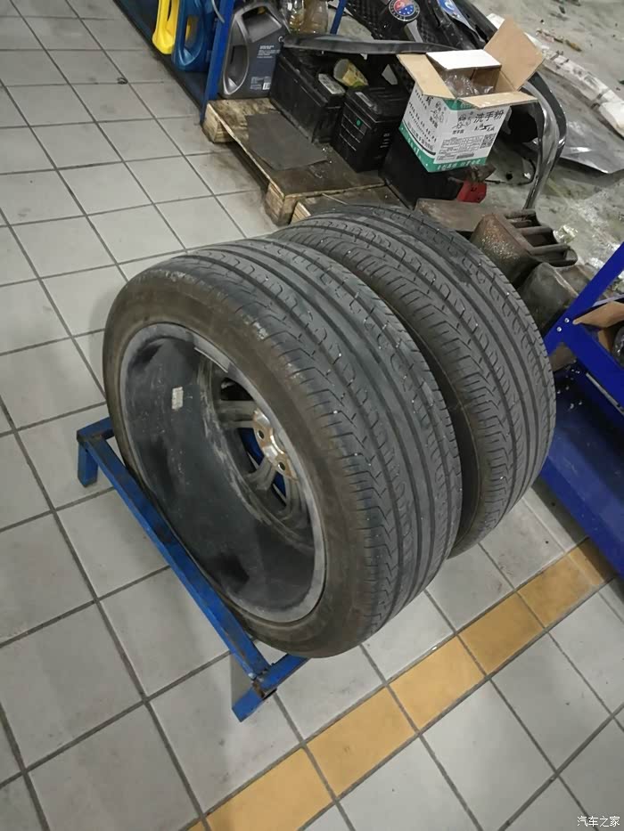 吊了起来,拆轮子,维修师傅力气真大,一个人把轮胎拿下了