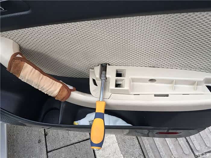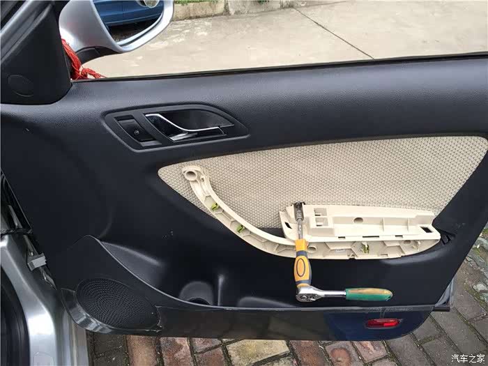 第一步就是拆解车门,直接用力拔出扶手,卡扣设计,不要怕弄坏。