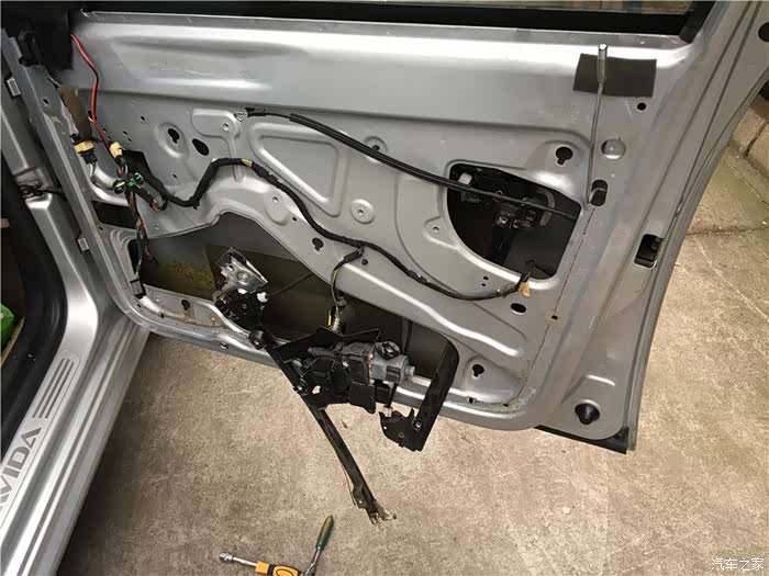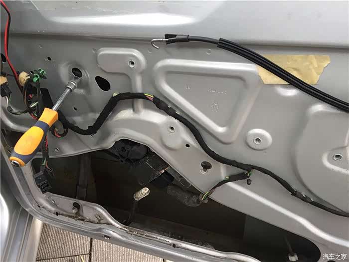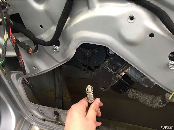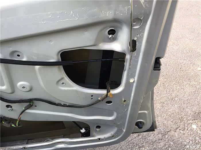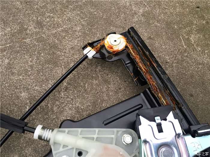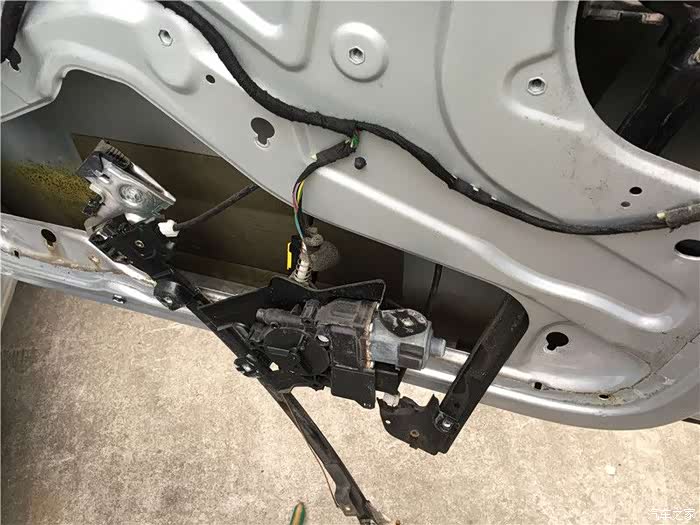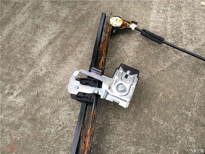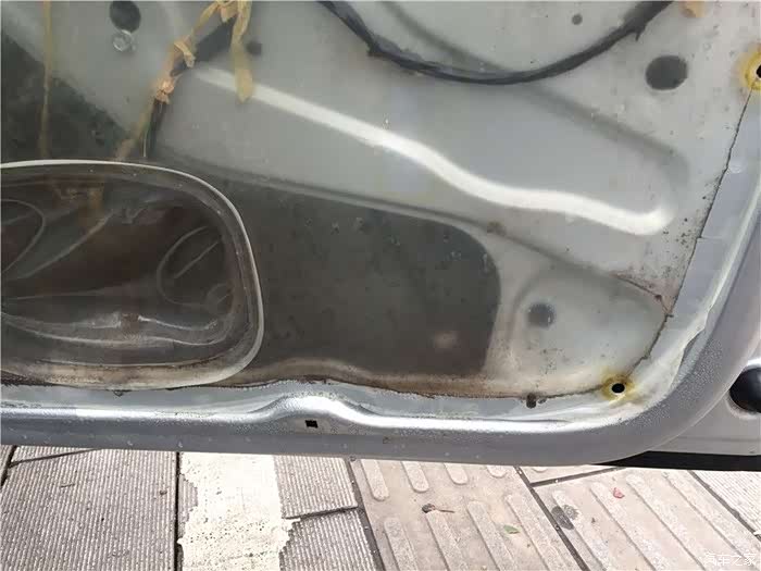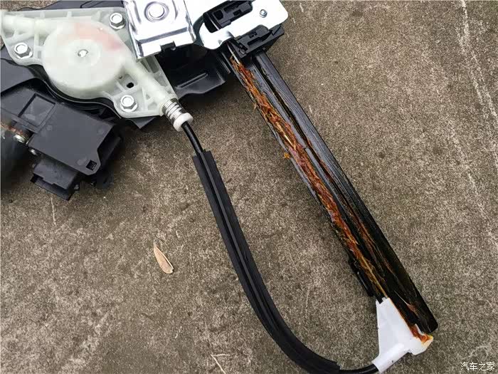 这款车有几个设计上的缺陷,其中之一就是车门容易漏水,这个漏水主要原因是2个:一个是缺失车窗密封条,导致过多的雨水进入车门内,导致摇窗机生锈,钢丝断裂。二是防水膜单薄,一旦水多来不及排出,防水膜就破损,然后水就到车里面去。坚持了9年,终于在秋冬这个雨季,右前摇窗机挂了,坚持不住了