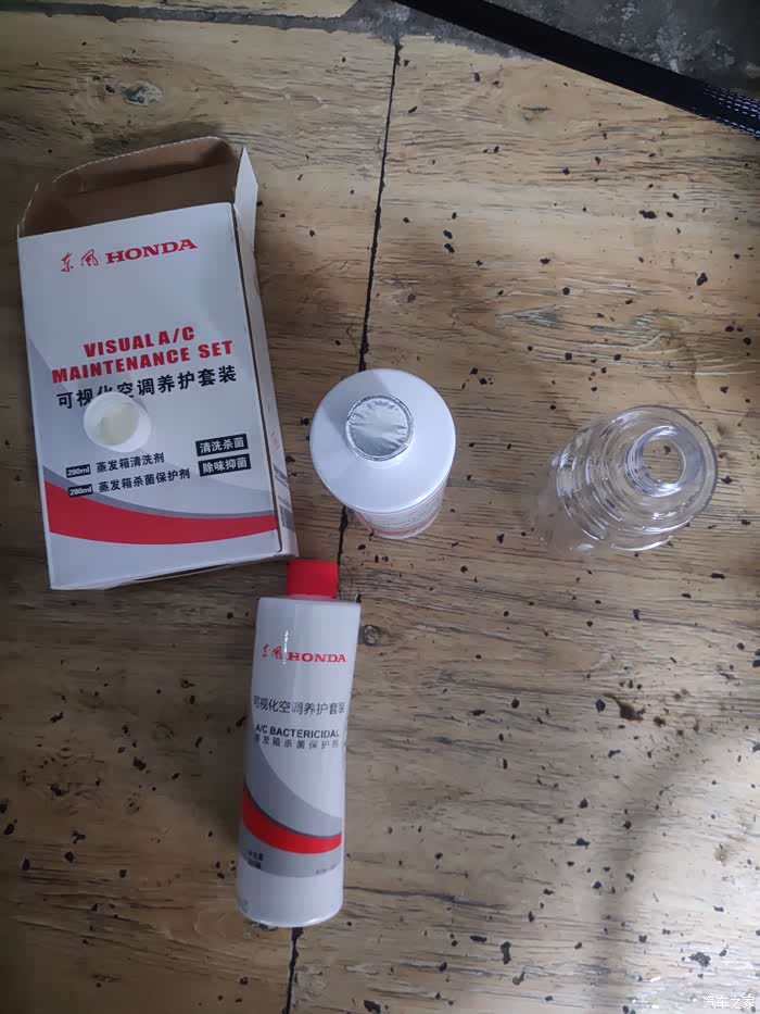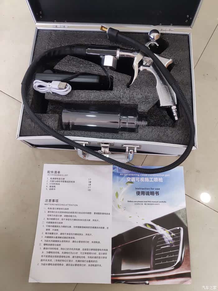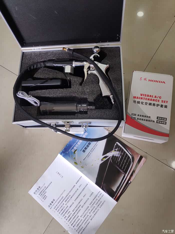 可视化清洗空调要的设备,还要可视化空调养护套装,设备我是网上买的是简易的,设备的原理其实一样的,无非就加了一个摄像头嘛。空调养护套装我是选用东风本田原装的。
