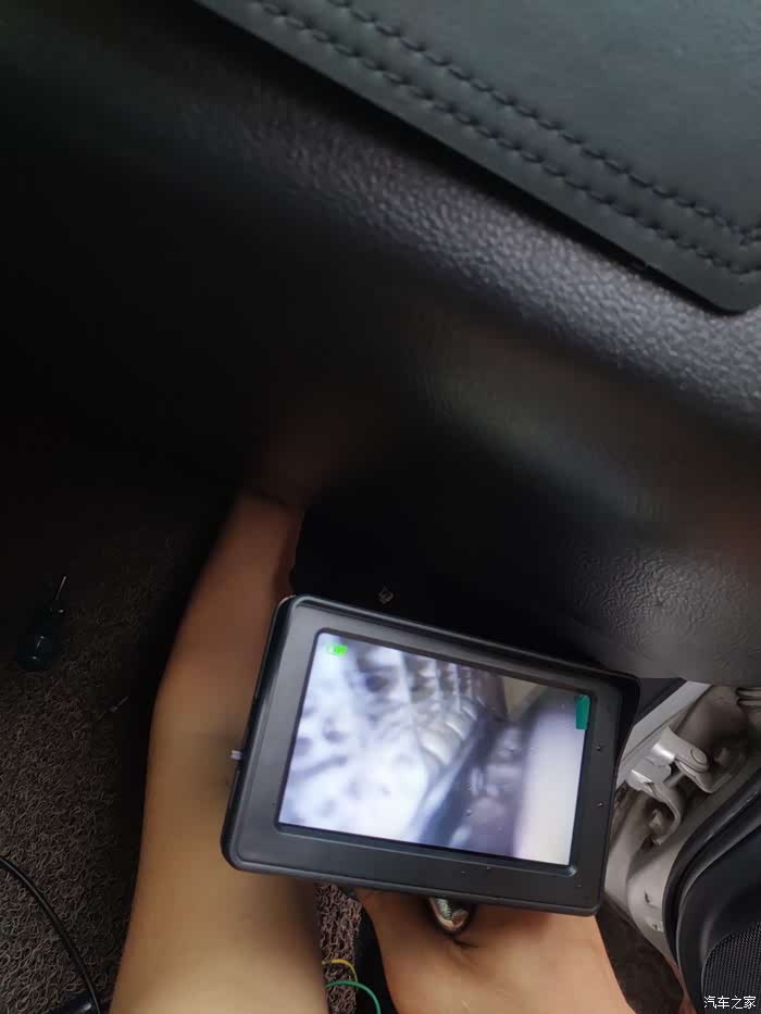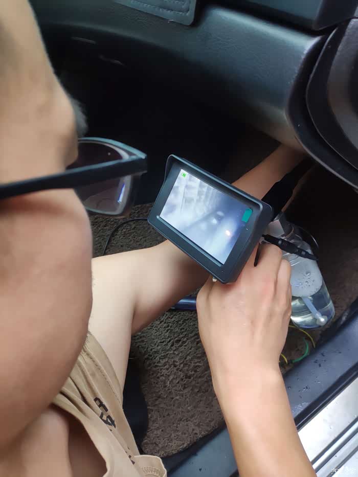 装好了清洗剂下面就把清洗设备从鼓风机安装孔插进去,随着可视摄像头的位置找到蒸发箱芯,然后进去喷洗。