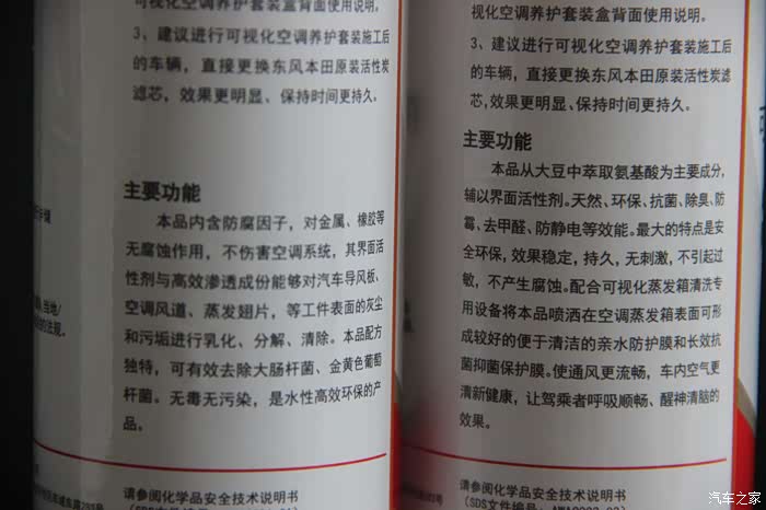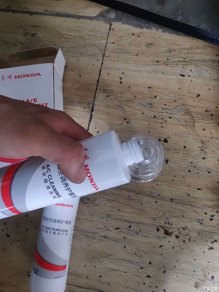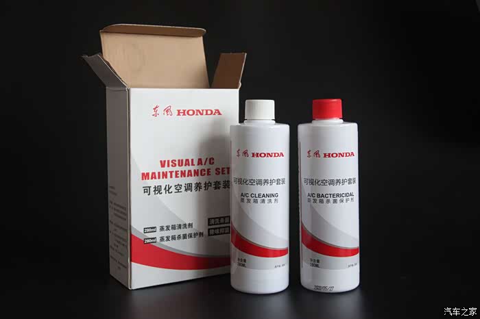 各车型清洗空调一样的,就是拆装下鼓风机,然后倒入套装药剂,用设备喷洗。下面几张照片是本田4S店的可视化空调养护套装的祥情照片,看介绍挺好的。