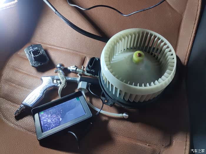突然发现插不进,估计也不好操作。所以接下来是想直接拆鼓风机好了,从鼓风机的安装洞孔插进去。接下来是拆鼓风机了。