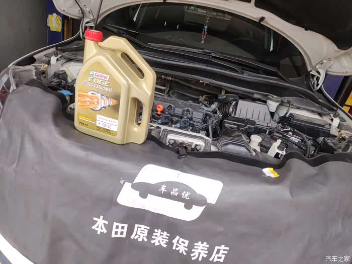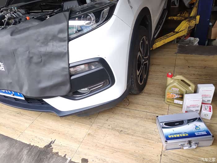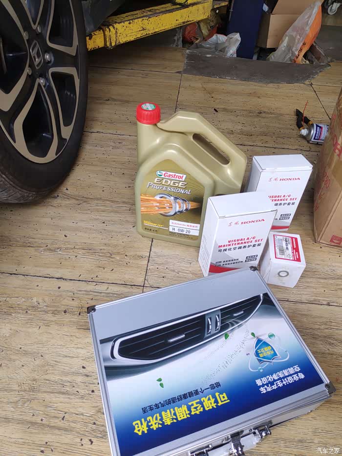 下面的照片就是修理店的操作流程了,清洗空调之前车子常规保养换下机油