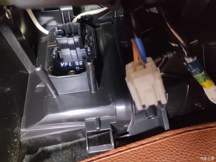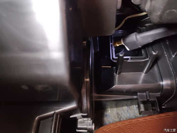 上面的照片不知道车友知道不知道这个,这个块塑料板就是副驾驶手套箱下面的一个护板,卡子卡的,直接摘掉,摘掉之后就可以看到空调的鼓风机了,还可以看到鼓风机电阻。