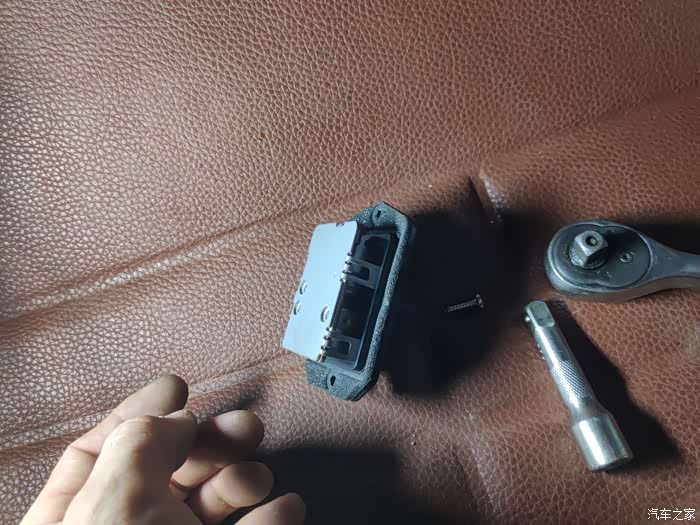 这个就是鼓风机电阻。东本可视化空调养护套装上面操作流程说明书说是要拆这个鼓风机电阻,我想他的言外之意是清洗空调的喷头管从鼓风机电阻安装孔插进去清洗,那就按说明书操作吧。