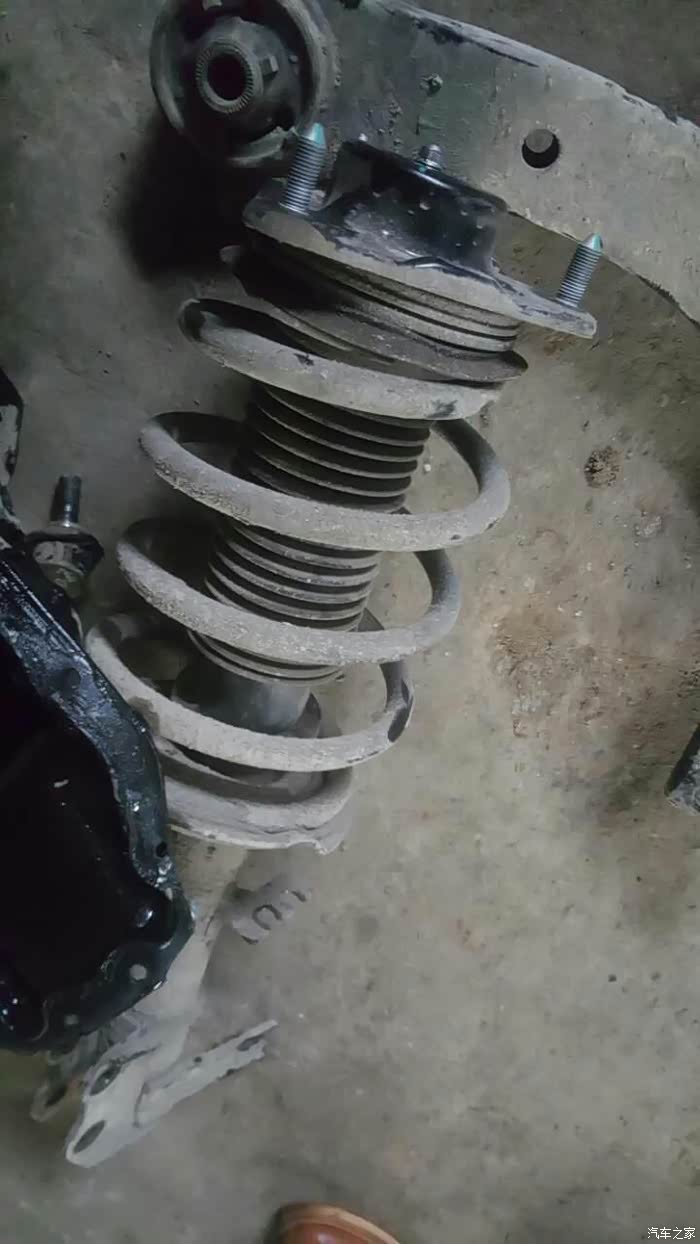 麦弗逊独立悬挂螺旋液压减震器,底座都变形了,