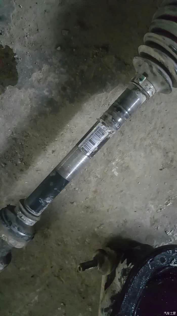 右前半轴,拖曳臂变形造成右轮整体悬挂和转向机构后移,车辆移动与横梁摩擦造成半轴磨损。
