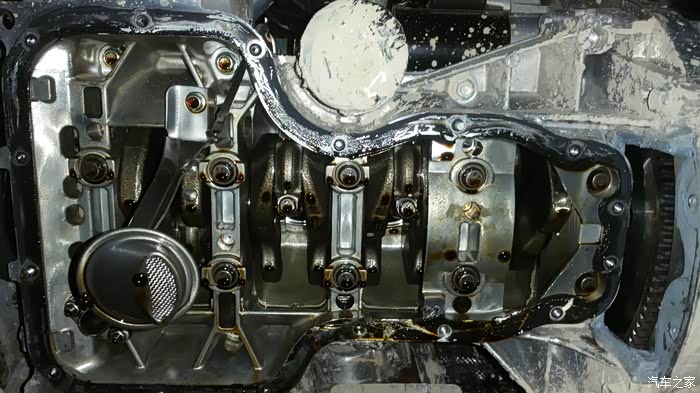 1.8L大心脏,在非摩擦面上,缸体同样打磨的光滑细腻,每一颗螺丝都打磨的非常仔细,没有一点金属碎屑。在底壳接触面,做的非常的好,师傅费了好大力才拆下来。