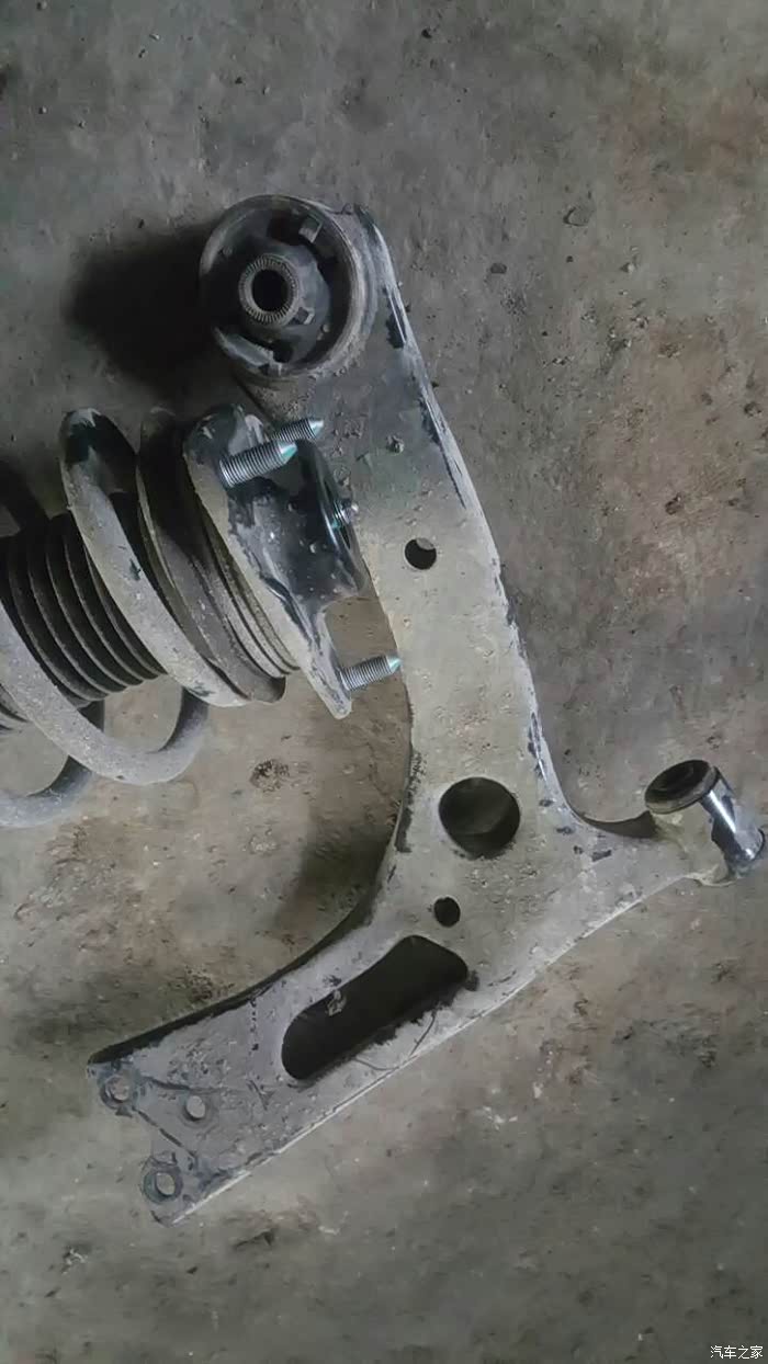 右前拖曳臂,完全变形,导致减震变形,师傅说建议更换,后期会出现跑偏,异响,轮胎异常磨损等问题。听师傅建议果断换新。