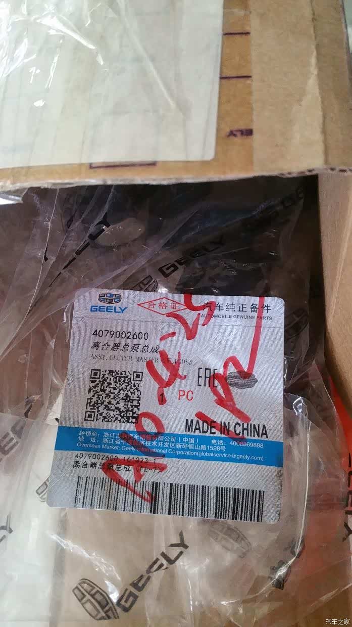 已拆下来原车离合器总泵总成,打码很清晰,做工很精细,但密封圈未完全密封造成漏油,这属于产品漏检工序,不是产品质量问题,也说明我运气有够好了,应该买一张彩票。