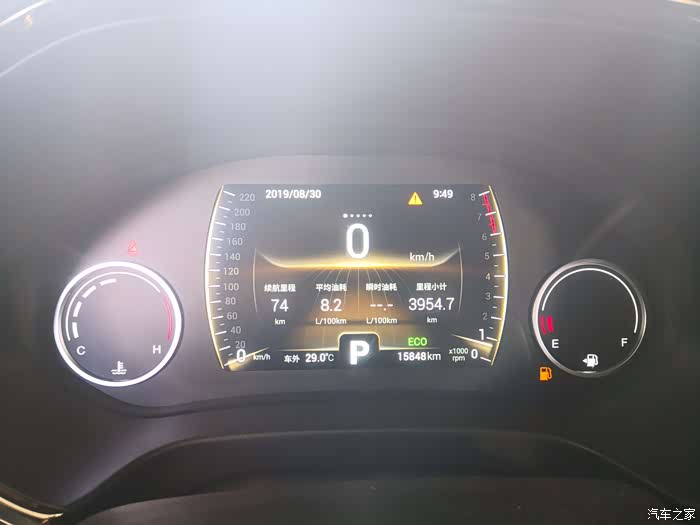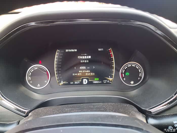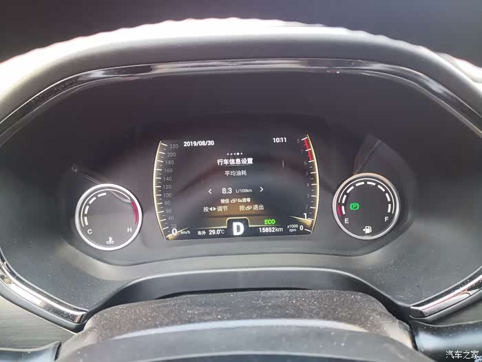 上图为出发时候的平均油耗,这是我之前在烟台市区加高速等等综合路况开了将近四千公里得到的平均油耗,基本上,自动挡的虎八,如果你的路况不是特别拥堵,综合油耗也就这么个数了。不过我要测试的是极限油耗,所以要把这个平均油耗先清零。