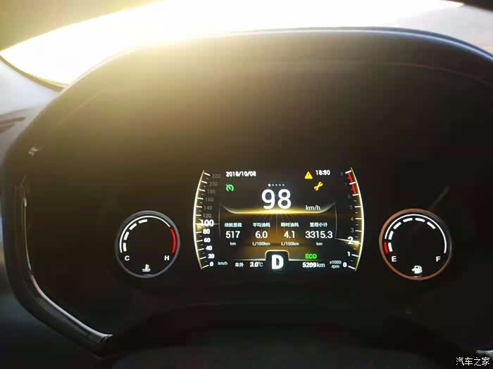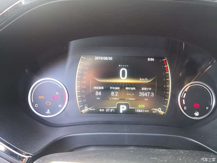 油表灯亮了,本来是打算测的准一点,从这次油表灯亮加油之后到下次油表灯亮了再加油,然后用加油的量除以跑的里程得到油耗,这样测试是最准的,但是由于虎八一箱油跑完的里程远多于这次要跑到五百公里左右的路程,所以只能退而求其次,用表现油耗来代替,反正虎八的表现油耗其实比实际油耗还高点,可以认为是准的。