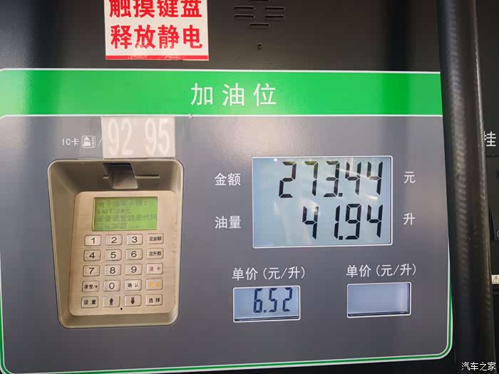 刚才的汽油数,把油箱加满了,加油枪跳枪了,准备出发。