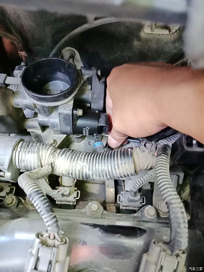 找到节气门部位,只要是会拆卸清洗节气门的车友,就一定会找到并拆卸怠速马达,不熟悉的不建议动手。
