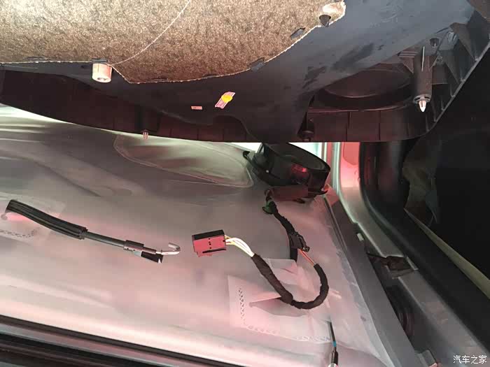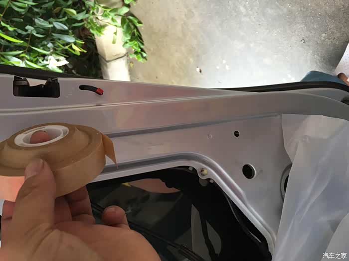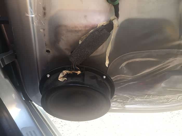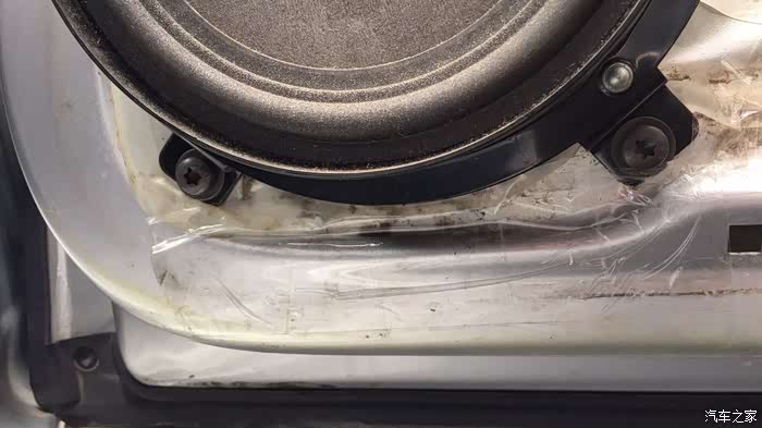 喇叭下面的防水膜,都没有了,怪不得,稍微有点水就会漏,临时用胶布包着,等防水膜到位。