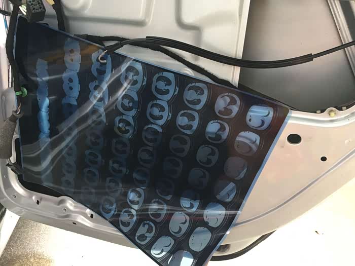新的防水膜到了,原车的撕掉,然后用除胶剂清除所有的胶水痕迹。