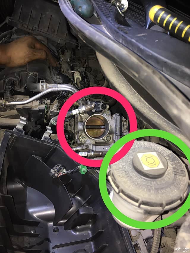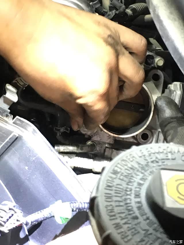 接下来清洗节气门,节气门建议每两万公里清洗一次。可有效改善动力和油耗问题。我所采用的方法是比较麻烦的拆下清洗。好处是清洗更彻底。