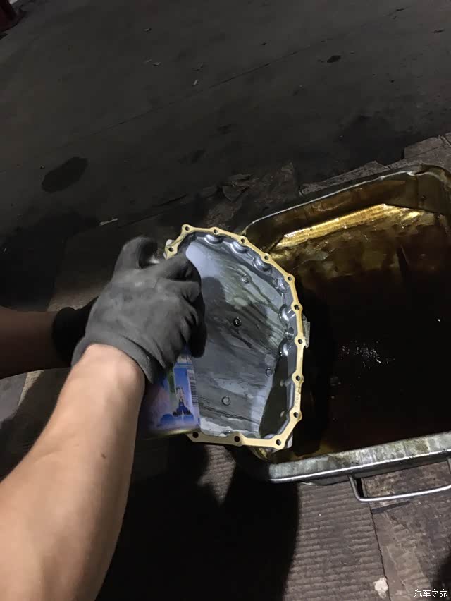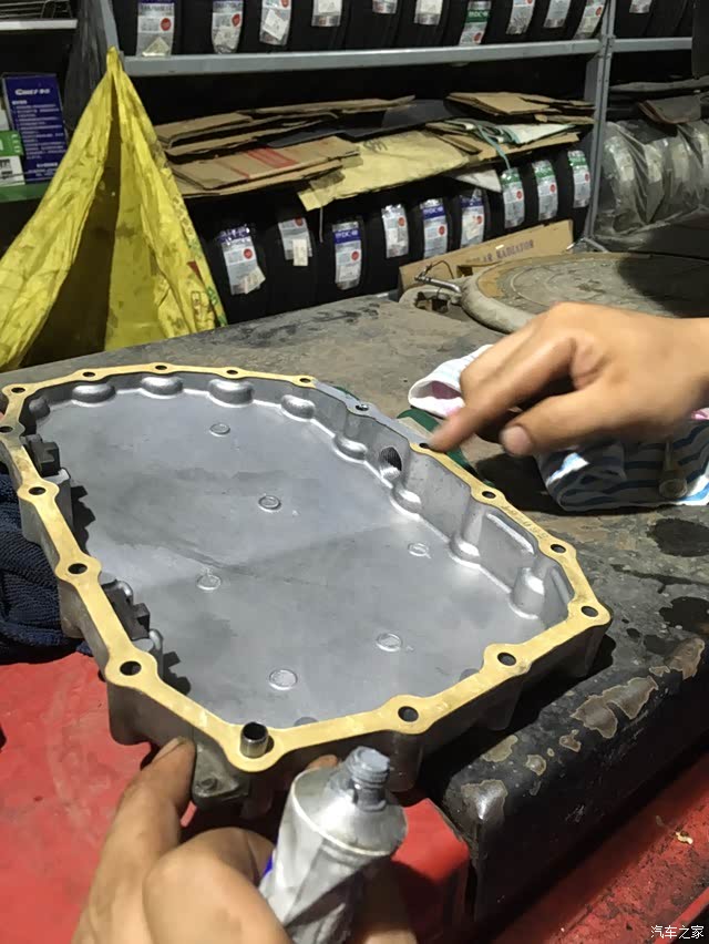 清洗过后的油底壳,换油底壳衬垫,抹密封胶