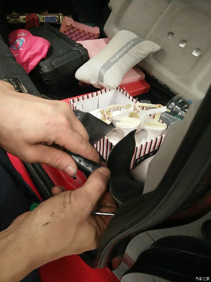 开始动工了,首先把这里的装饰件拆开,把塑料头给取出来