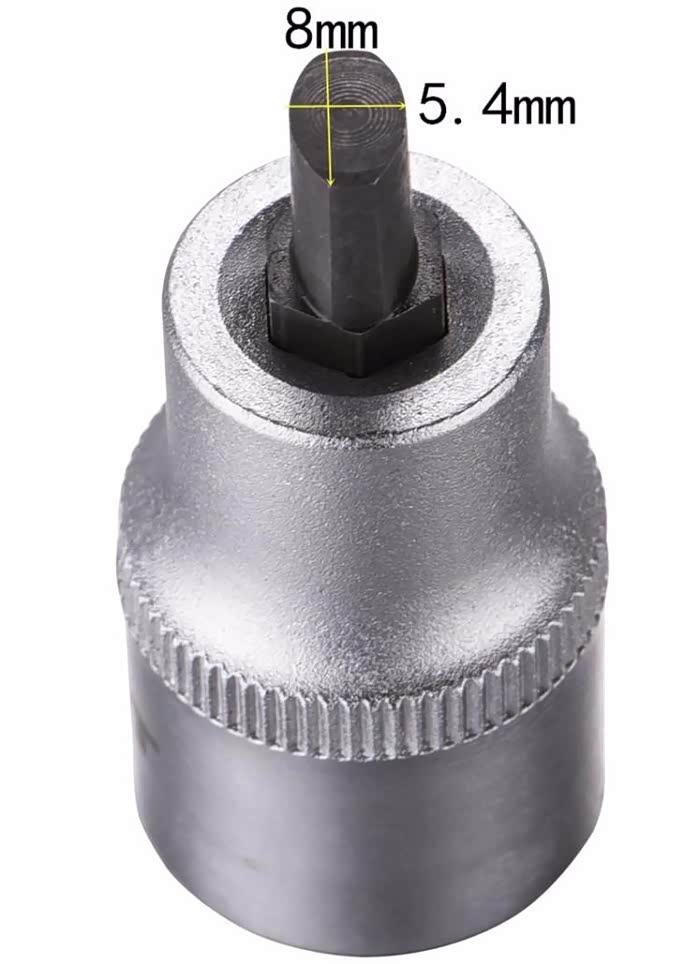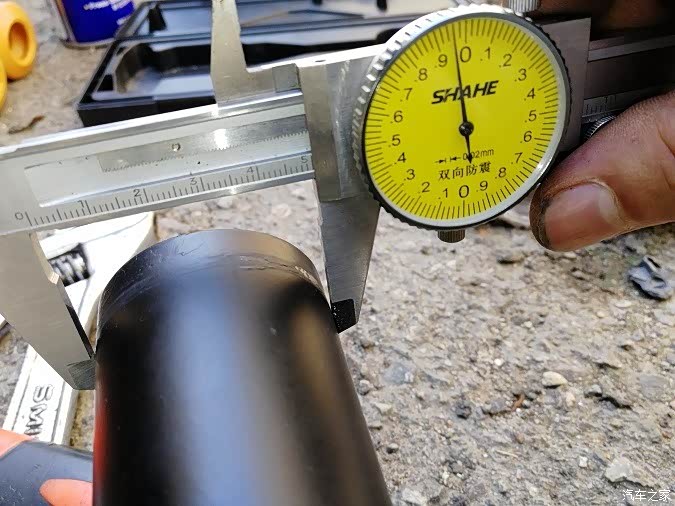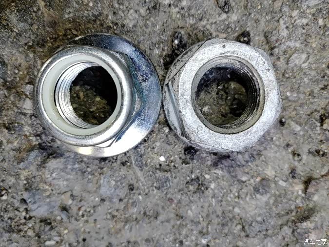 两两对比,发现两个问题:平面轴承压紧螺母规格不一样、活塞杆端部内六角孔也不一样。左为新减震器所配螺母,20mm对边;右边为原装减震器螺母,22mm对边。(注:购入的减震器不是原装品牌)