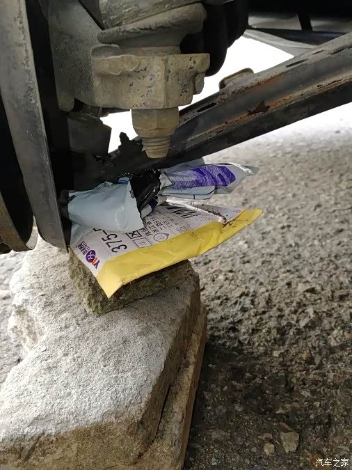 此处发现经过9年时间,穿过刹车油管的封堵胶已明显老化。