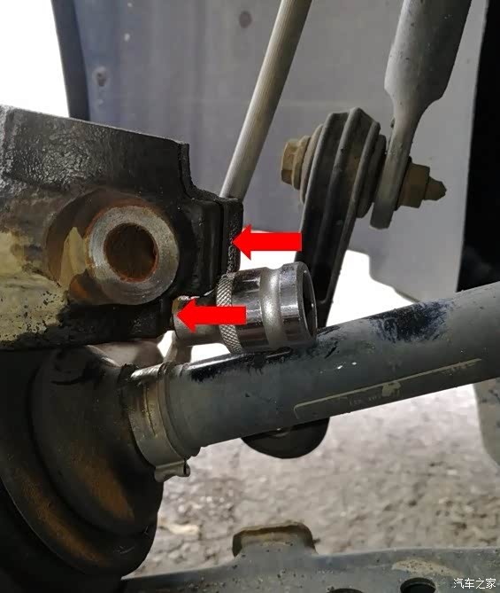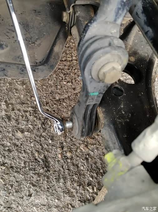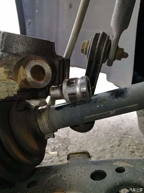 用16mm扳手拆下扭力杆吊耳螺栓。