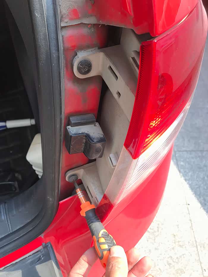 拆下盖板后两颗梅花固定尾灯螺丝展现出来