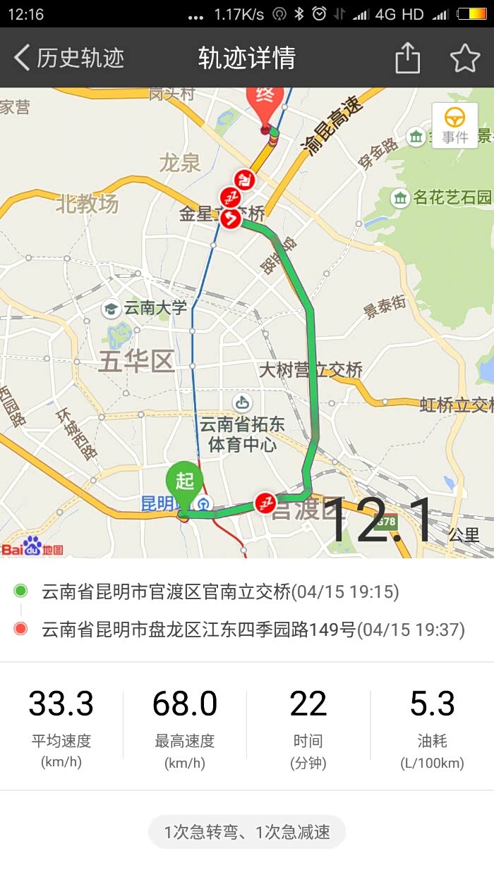 12公里,看北京路上也是堵得慌,平均油耗5.3,特别注意十字路口红灯状态,记记时间,超过1分钟的大路口红灯,坚决熄火等待。千万别加油冲到路口等红灯!看着过不去了就放掉油门划到路口。划的时候还得注意,如果绿灯了,得算着前面车辆通过路口的时间,尽量提前减速,控制车子通过路口尽量不要低于二档,甚至停车等。