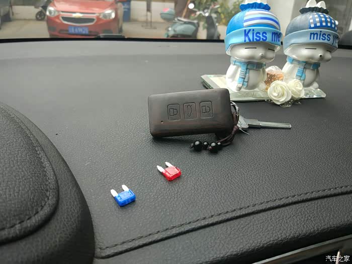 这2个像牙齿一样的东西叫保险丝,4s店1块钱1个,自己多备几个,万一车上的电器把保险丝烧了免得麻烦,打开方向盘下面的保险盒,盖子后面有图纸!照着换!
