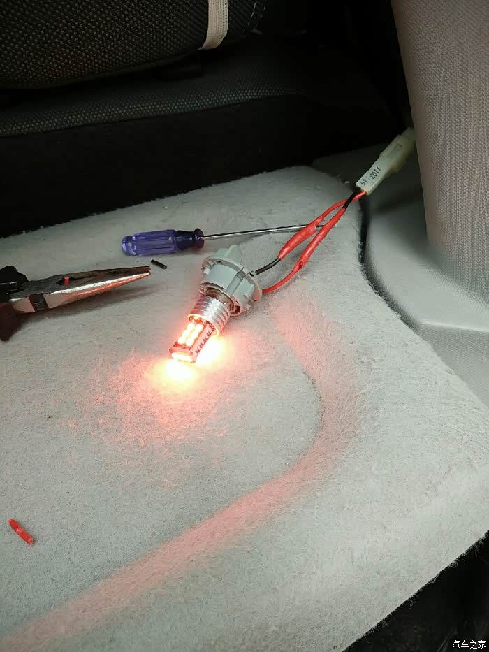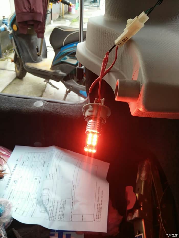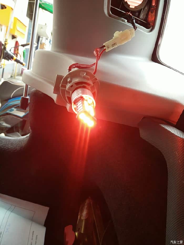 不过这里有个问题,就是奔奔迷你刹车灯普通灯泡与LED灯泡的正负极是反的,更换为LED的同时,也要把线的正负极给调换一下!下面就是我更换LED刹车灯的全过程。欢迎大家围观!