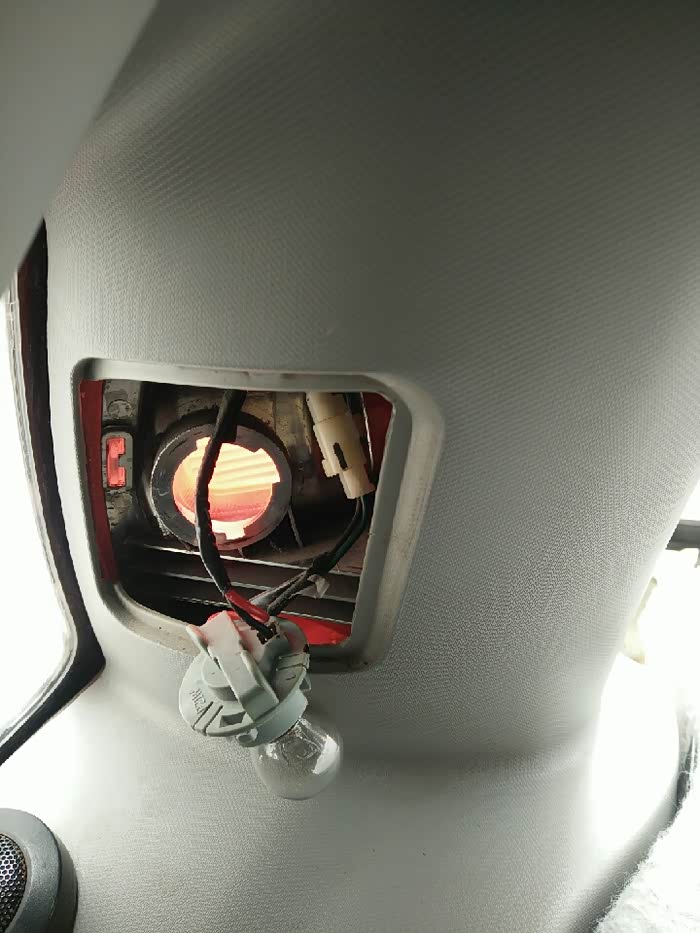 刹车灯就在那个圆形的灯做里面,把灯座顺时针旋转,就能拿出来灯座了