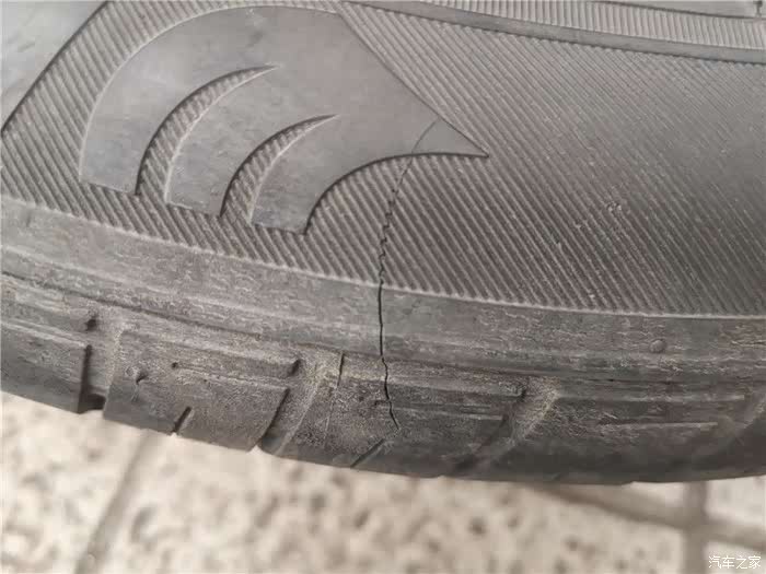 仔细看发现了木有,原车后胎到达一定公里数与年限开始有轻微的裂痕了,这种情况还算较好,如果见到内部钢丝就千万要更换了,毕竟生命比什么都重要