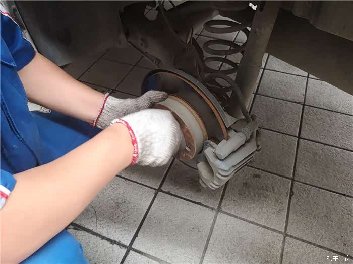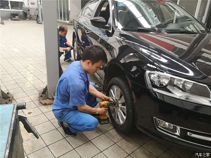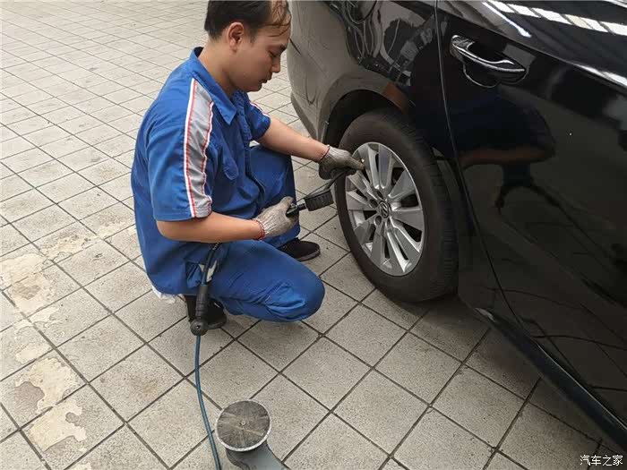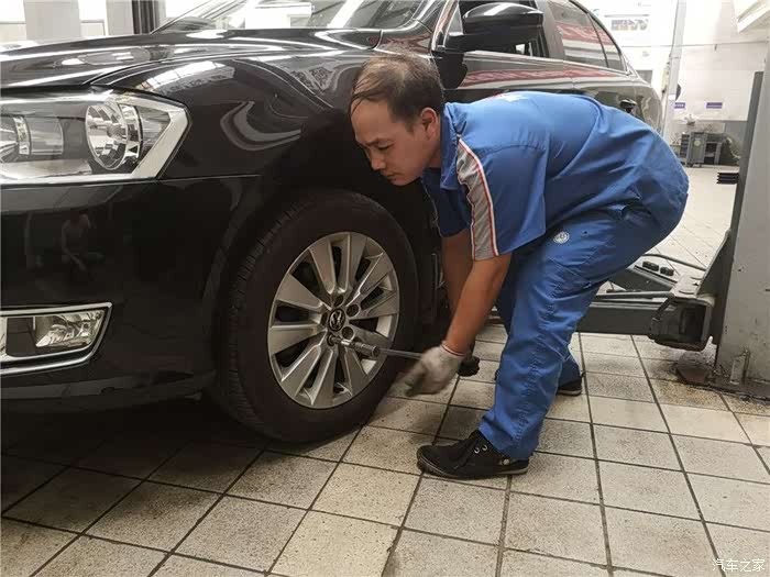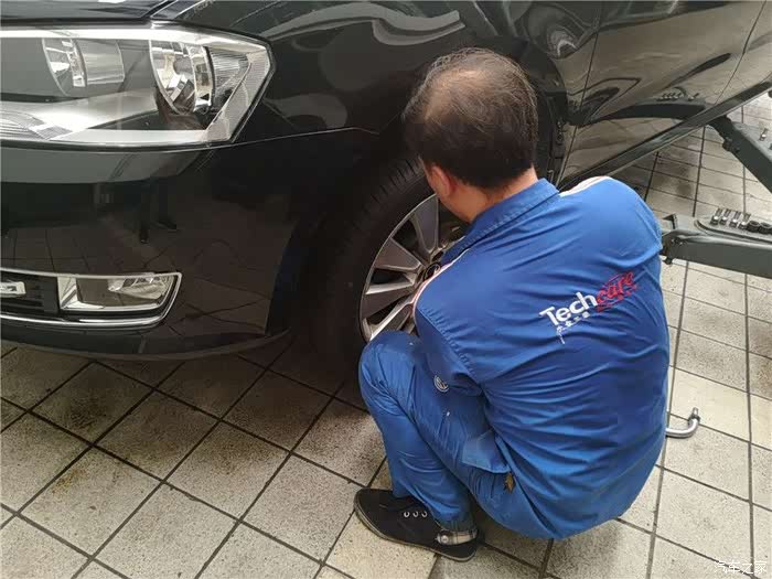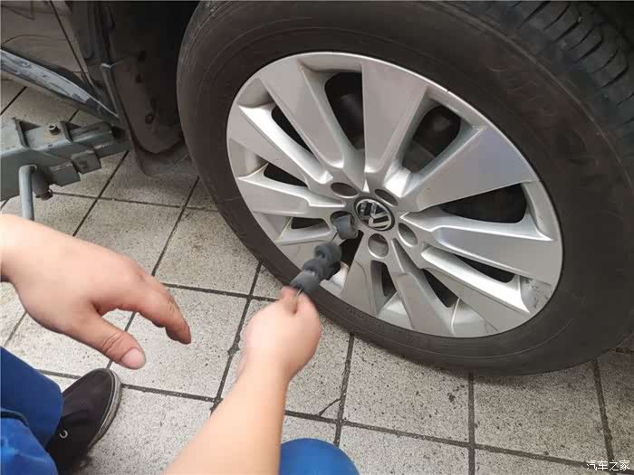 由于前轮胎之前更换过了,这次需要对调起到磨损均匀的情况,所以小哥首先开始卖力的下前轮胎