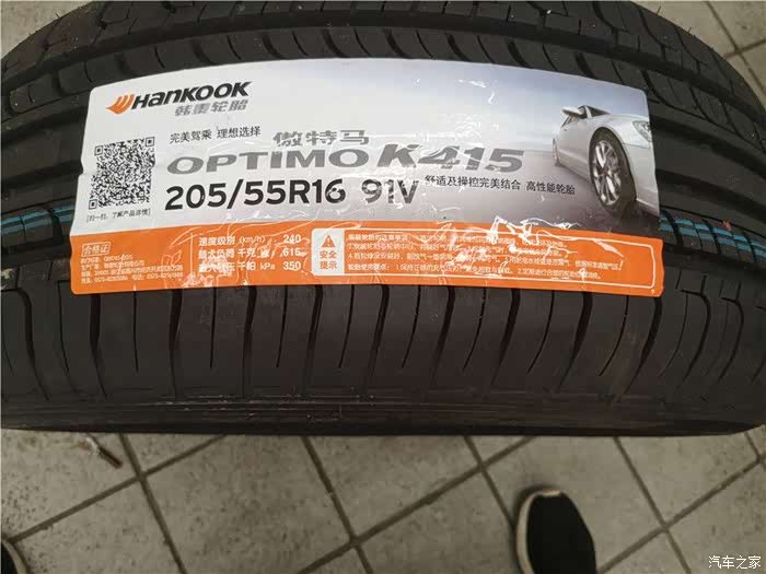 这次选择的轮胎还是与原车出厂时的型号品牌一样,韩泰傲特马的205/55R1691V轮胎,在耐磨方面这一款还是很不错的,主要还是性价比不错,米多且考虑舒适性或静音的车友以换米胖子或马牌