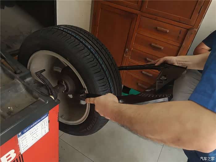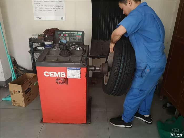 一切完毕后小哥开始帮忙给爱车装上新脚丫了,新的轮胎理所当然的换在了前轮,这样后期磨损更均匀