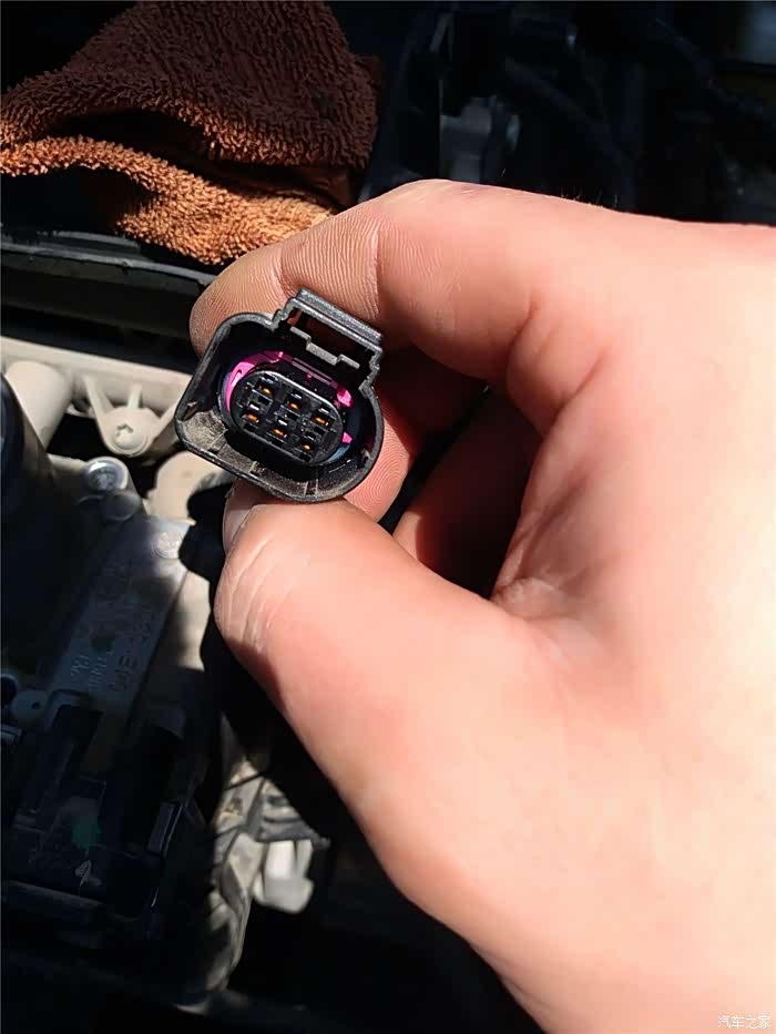 因为第一次清洗没啥经验 以为这积碳很难清洗需要用毛刷刷,(实际上只用清洗剂就能完全溶解积碳)所以决定拔掉线束,将节气门完全拆下来个彻底清洗。线束插头上面有个止口按住轻轻往外拔就能分离。