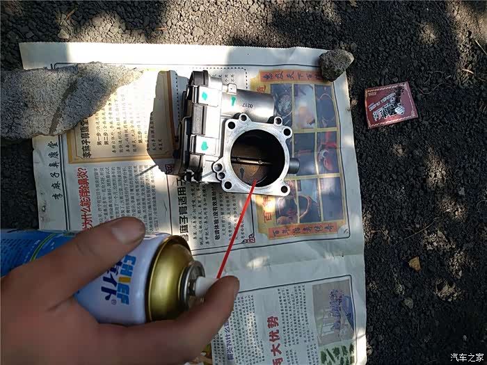 清洗 把准备好的报纸铺在地上接住清洗剂,保护好环境。一手拿着节气门另一只手拿着清洗剂,将节气门的洞口朝下或者侧面喷清洗剂清洗节气门,不要将洞口朝着脸部喷清洗剂清洗,以防清洗剂溅在脸上或身上。因为楼主我自己一个人操作,没办法拍到更详尽的清洗过程照片,还望大家见谅。