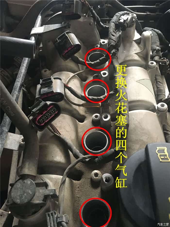下去进气管后打开发动机盖板拆下高压分线,可以根据每个气缸的位置做好记号避免混乱,如果高压分线顺序错误可能会导致点火顺序混乱